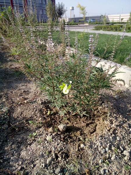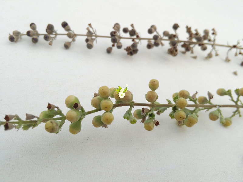 درختچه اي به ارتفاع 2-1 متر، خاكستري رنگ، در بالا منشعب، با شاخه هاي چهار گوشه كند، با گل آذين پانيكول بزرگ انتهايي. برگ ها با دمبرگ بلند، پنجهاي، 5 يا به ندرت 7 برگچه اي؛ برگچه ها سرنيزه اي، به طول 6-9(-12) سانتي متر، به عرض 1-2(-5/2) سانتيمتر، باريك شده طويل، نوك تيز، تقريبا كامل (بدون دندانه)، روي سطح فوقاني سبز شونده، سطح تحتاني خاكستري-نمدي، دمبرگچه دار. گرزن تنك، كوتاه، در چرخ هاي بسيار تنك و سنبله اي طويل قرار گرفته. كاسه گل به طول 2 ميلي متر، با دندانه هاي سه گوشه پهن، نوك كند، از طول لوله سه بار كوتاه تر. جام گل به طول 6-9 ميلي متر، بنفش، 3 برابر اندازه كاسه گل؛ با لولهاي به طول 4 ميليمتر، با دهانه بسته، با لب پائيني با كرك هاي ريش مانند متراكم و سفيد. ميوه شفت كروي، به قطر حدود 2 ميليمتر، از كاسه گل كمي بلند تر. میوه های آن شبیه فلفل سیاه و دارای بوی خاصی هستند.